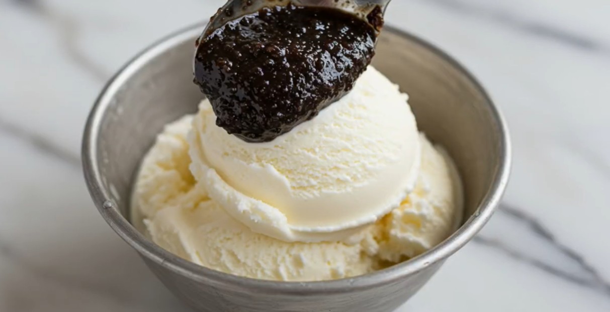 バニラアイスに黒ごまペーストをひとさじ。