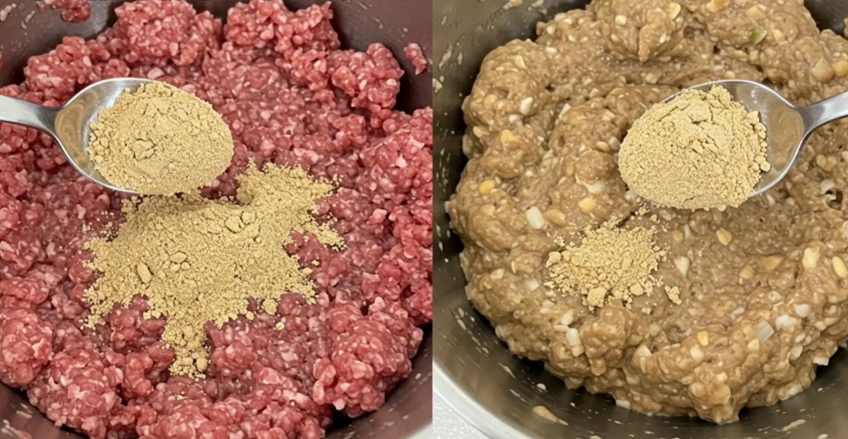 挽き肉に混ぜることでジューシーさを保ち、うま味がぐっと増します。